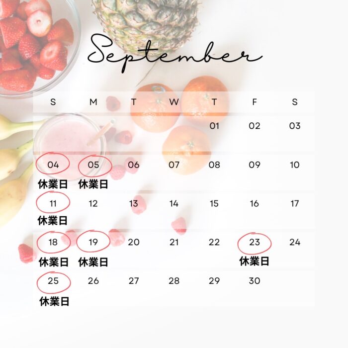 9月休業日のお知らせでございます。
