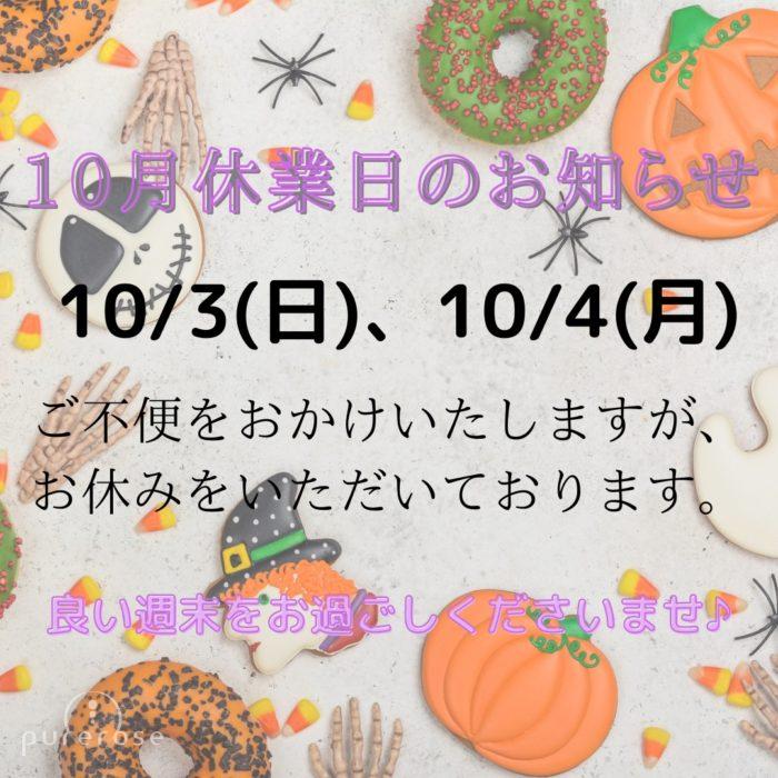 10月3日(日)、4(月)はお休みをいただいております。