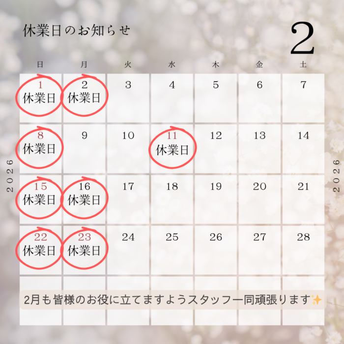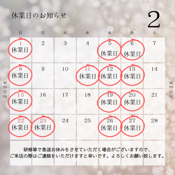 大阪店 年末年始休業日のお知らせ2025.12.27